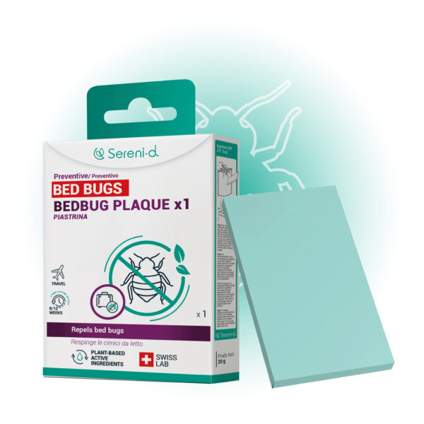 The TRAVEL PLAQUE BED BUG is a ready-to-use plaque specifically designed to effectively repel bed bugs in a preventive manner.